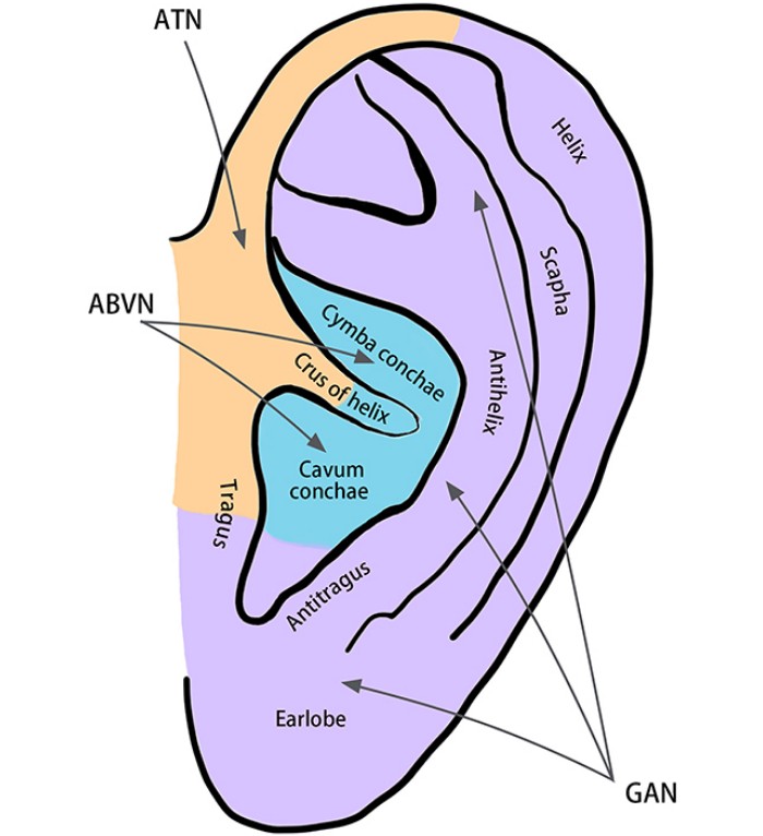 在中医理论中,耳甲区等ABVN分布区与调节脏腑功能的耳穴存在重叠。(图2)多项系统评价表明,基于此的耳穴疗法能有效改善睡眠(如延长睡眠时间、提高效率、降低PSQI评分),且比药物不良反应更少。